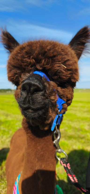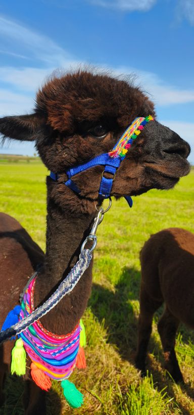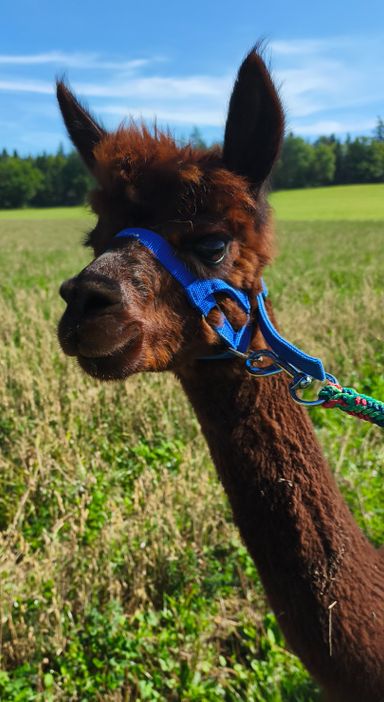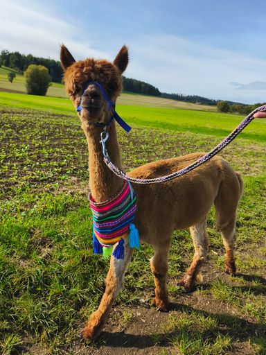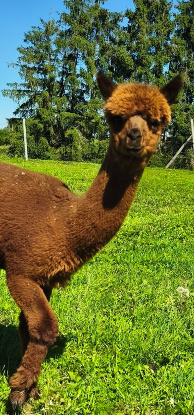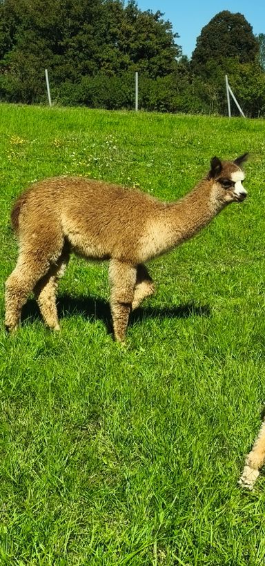 Luana ist eine süße Stute. Sie ist am 22.07.2023 geboren. Mit ihren weißen Beinen sieht sie aus als würde sie Strümpfe tragen. Sie ist ein sehr neugieriges Alpaka und bei Wanderungen läuft sie sehr gerne ganz vorne mit.