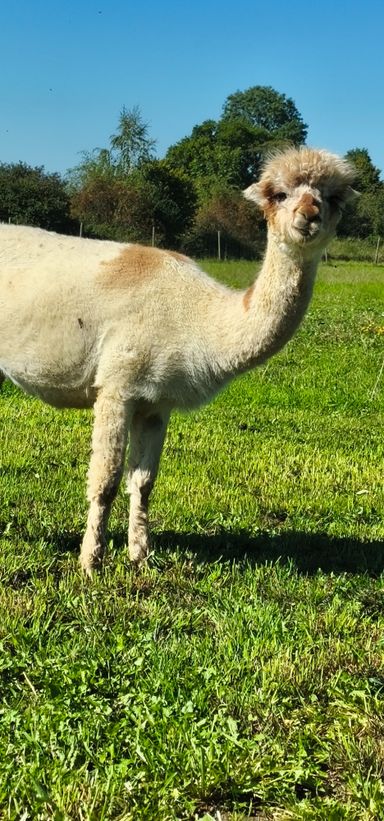 Der Name "Ava" kommt aus den Anden und bedeutet die "Kräftige". Ja, das ist sie . Sie hat viel Kraft und ist sehr verfressen. Ihre Wolle hat eine Top Qualität und ihr ruhiges Wesen ist sehr für Kinder geeignet. Sie ist im Jahr 2021 geboren.